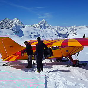 Wie läuft ein Gletscherflug ab? Klicke auf das Bild für den Video (6min)